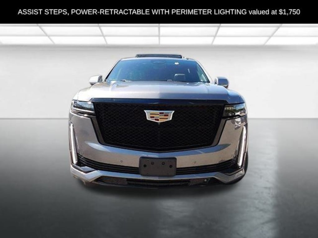 Driver Assist Tech Package (Adaptive Cruise Control, Air Ride Adaptive Suspension, Automatic Seat Belt Tightening, Enhanced Automatic Emergency Braking, Illuminating Front & Rear Sill Plates, Reverse Automatic Braking, and Soft Closing Front & Rear Doors), Preferred Equipment Group 1SH (Air Ionizer, AKG Studio Reference 36-Speaker Audio System, Body-Color Door Handles, Door Lock & Latch Shields, Electronic Limited-Slip Differential, Enhanced Automatic Parking Assist, Floor Console w/Covered Storage, Glass Breakage Sensor, Hitch Guidance w/Hitch View, In-Vehicle Trailering System App, Integrated Trailer Brake Controller, Lane Keep Assist w/Lane Departure Warning, Platinum Interior Trim, Power Panoramic Tilt-Sliding Sunroof, Rear Camera Mirror, Rear Camera Mirror Washer, Rear Cross Traffic Alert, Rear Seat Entertainment System, Reconfigurable Full-Color Head-Up Display, Running Board Assist Steps, Theft-Deterrent Alarm System, Trailer Side Blind Zone Alert, Vehicle Inclination Sensor, and Vehicle Interior Movement Sensor), 4WD, 16.9" Diagonal OLED Infotainment Screen, 2-Presets Memory For Driver Seat Adjuster, 3.23 Axle Ratio, 3rd row seats: split-bench, 4-Way Power Driver Lumbar Seat Adjuster, 4-Way Power Front Passenger Lumbar Seat Adjuster, 4-Wheel Disc Brakes, 8-Way Power Driver Seat Adjuster, 8-Way Power Front Passenger Seat Adjuster, A/V remote, ABS brakes, Adaptive suspension, Air Conditioning, Alloy wheels, AM/FM radio: SiriusXM with 360L, Apple CarPlay/Android Auto, Audio memory, Auto High-beam Headlights, Auto tilt-away steering wheel, Auto-dimming door mirrors, Automatic temperature control, Brake assist, Bumpers: body-color, Compass, Cooled Console w/Covered Storage, Delay-off headlights, Door auto-latch, Driver door bin, Driver vanity mirror, Dual front impact airbags, Dual front side impact airbags, Electronic Stability Control, Emergency communication system: OnStar and Cadillac connected services capable, Four wheel independent suspension, Front anti-roll bar, Front Bucket Seats, Front Center Armrest w/Storage, Front dual zone A/C, Front License Plate Bracket, Front reading lights, Full Semi-Aniline Leather Seats, Fully automatic headlights, Garage door transmitter, Genuine wood console insert, Genuine wood dashboard insert, Genuine wood door panel insert, HD Radio, Headphones, Heads-Up Display, Heated & Ventilated Driver & Front Passenger Seats, Heated door mirrors, Heated Driver & Front Passenger Seats, Heated front seats, Heated rear seats, Heated steering wheel, Illuminated Cargo Sill Plate (LPO), Illuminated entry, Leather steering wheel, Low tire pressure warning, Magnetic Ride Control Suspension, Memory seat, Navigation System, Night Vision, Occupant sensing airbag, Outside temperature display, Overhead airbag, Overhead console, Panic alarm, Passenger door bin, Passenger vanity mirror, Power door mirrors, Power driver seat, Power Liftgate, Power Lumbar Massage Driver Seat, Power Lumbar Massage Front Passenger Seat, Power moonroof, Power passenger seat, Power steering, Power windows, Power-Retractable Assist Steps, Puddle Lamps w/Cadillac Crest (LPO), Radio data system, Radio: AM/FM/SiriusXM w/Navigation, Rain sensing wipers, Rear air conditioning, Rear anti-roll bar, Rear audio controls, Rear reading lights, Rear window defroster, Rear window wiper, Remote keyless entry, Roof rack: rails only, Security system, SiriusXM w/360L, Speed control, Split folding rear seat, Spoiler, Steering wheel memory, Steering wheel mounted audio controls, Tachometer, Teen Driver, Telescoping steering wheel, Tilt steering wheel, Traction control, Trip computer, Turn signal indicator mirrors, Variably intermittent wipers, Ventilated front seats, Voltmeter, Wheels: 22" 12-Spoke Polished Alloy, and Wireless Apple CarPlay/Wireless Android Auto.