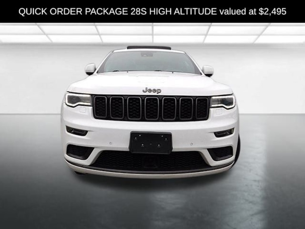 High Altitude II Package, Jeep Advanced Active Safety Group (Adaptive Cruise Control w/Stop, Advanced Brake Assist, Full Speed FWD Collision Warn Plus, Lane Departure Warning Plus, Parallel & Perp Park Assist w/Stop, and Rain Sensitive Windshield Wipers), Quick Order Package 28S High Altitude (DISC) (Wheels: 20" x 8.0" Granite Crystal Aluminum (DISC), #5 Seat Foam Cushion, Anodized/Light Black Chrome Interior Accents, Black Roof Molding, Black Wood Instrument Panel & Door Spears, Blind Spot & Cross Path Detection, Body Color Door Handles, Body Color Exterior Mirrors, Body Color Fascias w/Granite Accents, Body Color Sill Extension, Bright Pedals, Dark Day Light Opening Moldings, Dark Headlamp Bezel Finish, Dark Lens Taillamps, Dual Dark Chrome Exhaust Tip, Granite Crystal Exterior Accents, Granite Crystal Exterior Badging, Granite Crystal/Black Grille, Headlamp Washer, Leather Wrapped Steering Wheel, Nappa Leather Trimmed Bucket Seats (DISC), Premium Accent Claddings, and Premium LED Fog Lamps), Trailer Tow Group IV (DISC) (7 & 4 Pin Wiring Harness, Class IV Receiver Hitch, Heavy-Duty Engine Cooling, and Rear Load Leveling Suspension), 4WD, Heated front seats, Navigation System, Power moonroof, Ventilated front seats, 10 Speakers, 230MM Rear Axle, 3.09 Rear Axle Ratio, 3.45 Rear Axle Ratio, 4-Wheel Disc Brakes, ABS brakes, Active Noise Control System, Air Conditioning, AM/FM radio: SiriusXM, Anti-whiplash front head restraints, Apple CarPlay/Android Auto, Audio memory, Auto High-beam Headlights, Auto-dimming door mirrors, Auto-dimming Rear-View mirror, Auto-leveling suspension, Automatic temperature control, Brake assist, Bumpers: body-color, Compass, Delay-off headlights, Driver door bin, Driver vanity mirror, Dual Bright Exhaust Tips, Dual front impact airbags, Dual front side impact airbags, Electronic Limited Slip Differential Rear Axle, Electronic Stability Control, Emergency communication system: SiriusXM Guardian, Engine Oil Cooler, Four wheel independent suspension, Front anti-roll bar, Front Bucket Seats, Front Center Armrest w/Storage, Front dual zone A/C, Front fog lights, Front reading lights, Fully automatic headlights, Garage door transmitter, Genuine wood dashboard insert, Heated door mirrors, Heated rear seats, Heated steering wheel, High intensity discharge headlights: Bi-Xenon, Illuminated entry, Knee airbag, Leather Shift Knob, Leather steering wheel, Leather Trim Seats w/Edge Welting, Low tire pressure warning, Memory seat, Normal Duty Suspension, Occupant sensing airbag, Outside temperature display, Overhead airbag, Overhead console, Panic alarm, ParkView Rear Back-Up Camera, Passenger door bin, Passenger vanity mirror, Power door mirrors, Power driver seat, Power Liftgate, Power passenger seat, Power steering, Power windows, Quadra-Drive II 4WD System, Radio data system, Radio: Uconnect 4C Nav w/8.4" Display, Rain sensing wipers, Rear anti-roll bar, Rear reading lights, Rear seat center armrest, Rear window defroster, Rear window wiper, Remote keyless entry, Roof rack: rails only, Security system, Speed control, Speed-Sensitive Wipers, Split folding rear seat, Spoiler, Steering wheel mounted audio controls, Tachometer, Telescoping steering wheel, Tilt steering wheel, Traction control, Trip computer, Turn signal indicator mirrors, and Variably intermittent wipers.