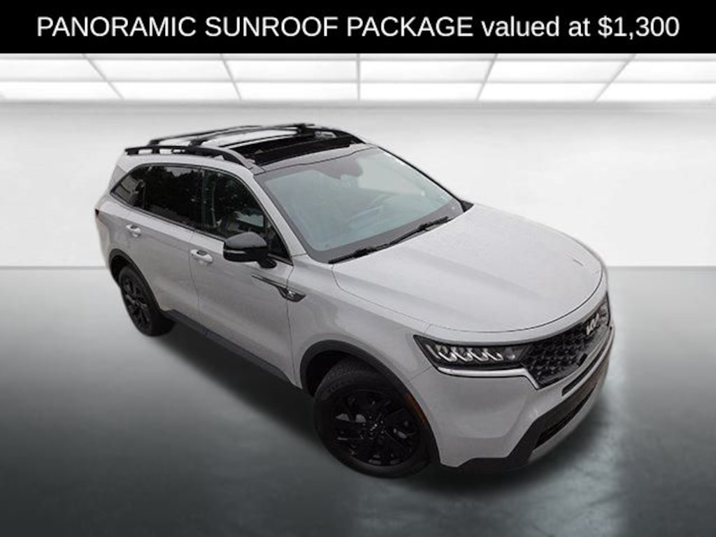 Panoramic Sunroof Package (LED Interior Lighting and Power Sunroof w/Power Sunshade), AWD, Wheels: 7.5J x 18" Gloss Black Alloy, 3rd row seats: split-bench, 4-Wheel Disc Brakes, 4.081 Axle Ratio, 6 Speakers, ABS brakes, Air Conditioning, AM/FM radio: SiriusXM, Apple CarPlay & Android Auto, Auto High-beam Headlights, Automatic temperature control, Brake assist, Bumpers: body-color, Delay-off headlights, Driver door bin, Driver vanity mirror, Dual front impact airbags, Dual front side impact airbags, Electronic Stability Control, Emergency communication system: UVO Link, Exterior Parking Camera Rear, Four wheel independent suspension, Front anti-roll bar, Front Bucket Seats, Front Center Armrest, Front dual zone A/C, Front reading lights, Fully automatic headlights, Heated door mirrors, Heated Front Bucket Seats, Heated front seats, Illuminated entry, Knee airbag, Leather Shift Knob, Leather steering wheel, Low tire pressure warning, Navigation System, Occupant sensing airbag, Outside temperature display, Overhead airbag, Overhead console, Panic alarm, Passenger door bin, Passenger vanity mirror, Power door mirrors, Power driver seat, Power steering, Power windows, Radio data system, Radio: AM/FM Audio System, Rear air conditioning, Rear anti-roll bar, Rear reading lights, Rear seat center armrest, Rear window defroster, Rear window wiper, Remote keyless entry, Roof rack: rails only, Security system, Smart Key w/ Push Button and Remote Start, Speed control, Speed-sensing steering, Split folding rear seat, Spoiler, Steering wheel mounted audio controls, SynTex Artificial Leather Seat Trim, Tachometer, Telescoping steering wheel, Tilt steering wheel, Traction control, Trip computer, Turn signal indicator mirrors, and Variably intermittent wipers.