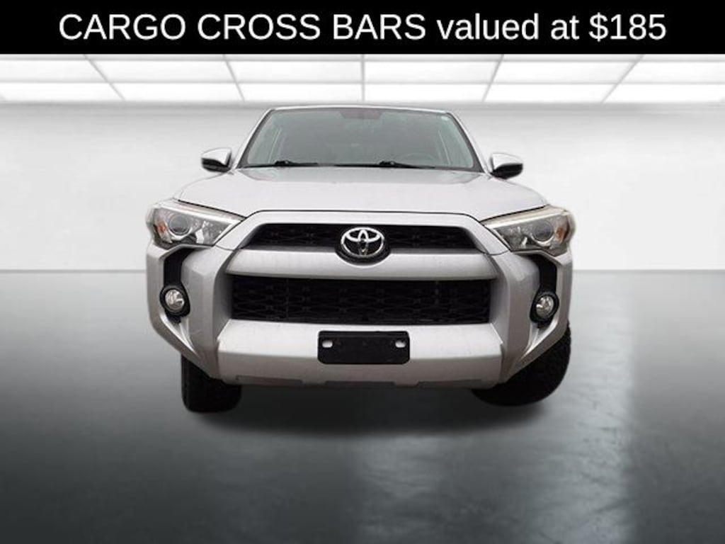 4WD, Cloth, 17" x 7.0" 6-Spoke Alloy Wheels, 3.727 Axle Ratio, 4-Wheel Disc Brakes, 8 Speakers, ABS brakes, Air Conditioning, Alloy wheels, AM/FM radio: SiriusXM, Anti-whiplash front head restraints, Brake assist, Bumpers: body-color, CD player, Driver door bin, Driver vanity mirror, Dual front impact airbags, Dual front side impact airbags, Electronic Stability Control, Exterior Parking Camera Rear, Front anti-roll bar, Front Bucket Seats, Front Center Armrest, Front fog lights, Front reading lights, Front wheel independent suspension, Heated door mirrors, Illuminated entry, Knee airbag, Leather Shift Knob, Leather steering wheel, Low Fabric Seat Trim, Low tire pressure warning, Occupant sensing airbag, Outside temperature display, Overhead airbag, Overhead console, Panic alarm, Passenger door bin, Passenger vanity mirror, Power door mirrors, Power driver seat, Power steering, Power windows, Radio: Entune Audio Plus w/Connected Navigation, Rear anti-roll bar, Rear seat center armrest, Rear window defroster, Rear window wiper, Remote keyless entry, Roof rack: rails only, Speed control, Speed-sensing steering, Split folding rear seat, Spoiler, Steering wheel mounted audio controls, Tachometer, Telescoping steering wheel, Tilt steering wheel, Traction control, Trip computer, Variably intermittent wipers, and Voltmeter.